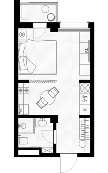 В продаже студии от 25,3 м² и двухкомнатные квартиры до 54,3 м². Можно зонировать пространство под себя или объединить квартиры до 100 м². Панорамные окна, французские балконы, просторные коридоры — продумано до мелочей. Приятно, когда купить квартиру в Сочи от застройщика означает не компромисс, а удовольствие.