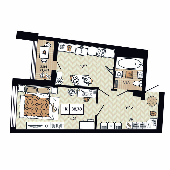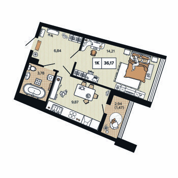 1-комнатная
