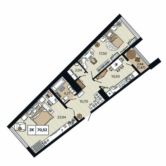 Площадь от 69 м2