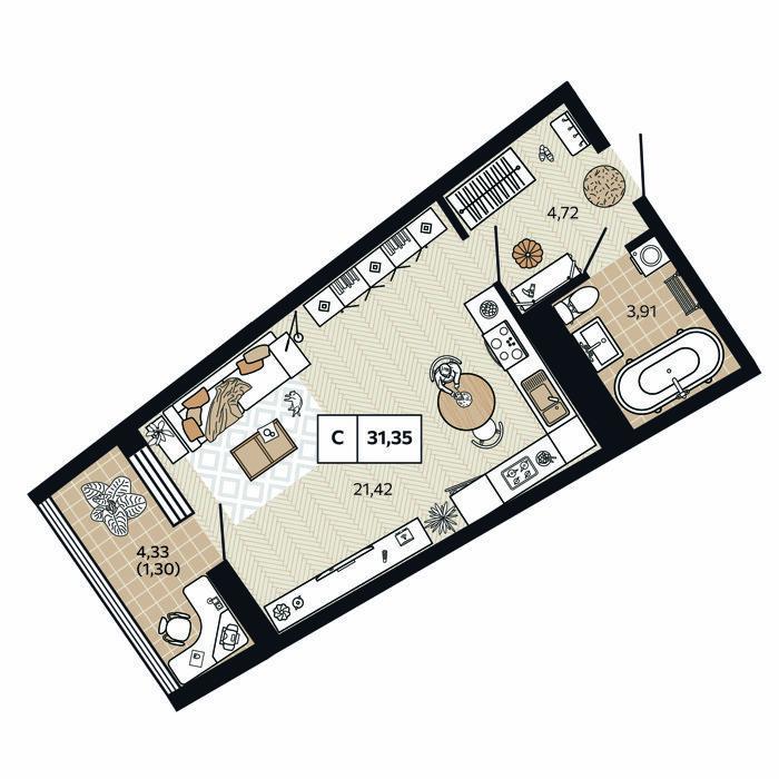 Площадь от 31 м2